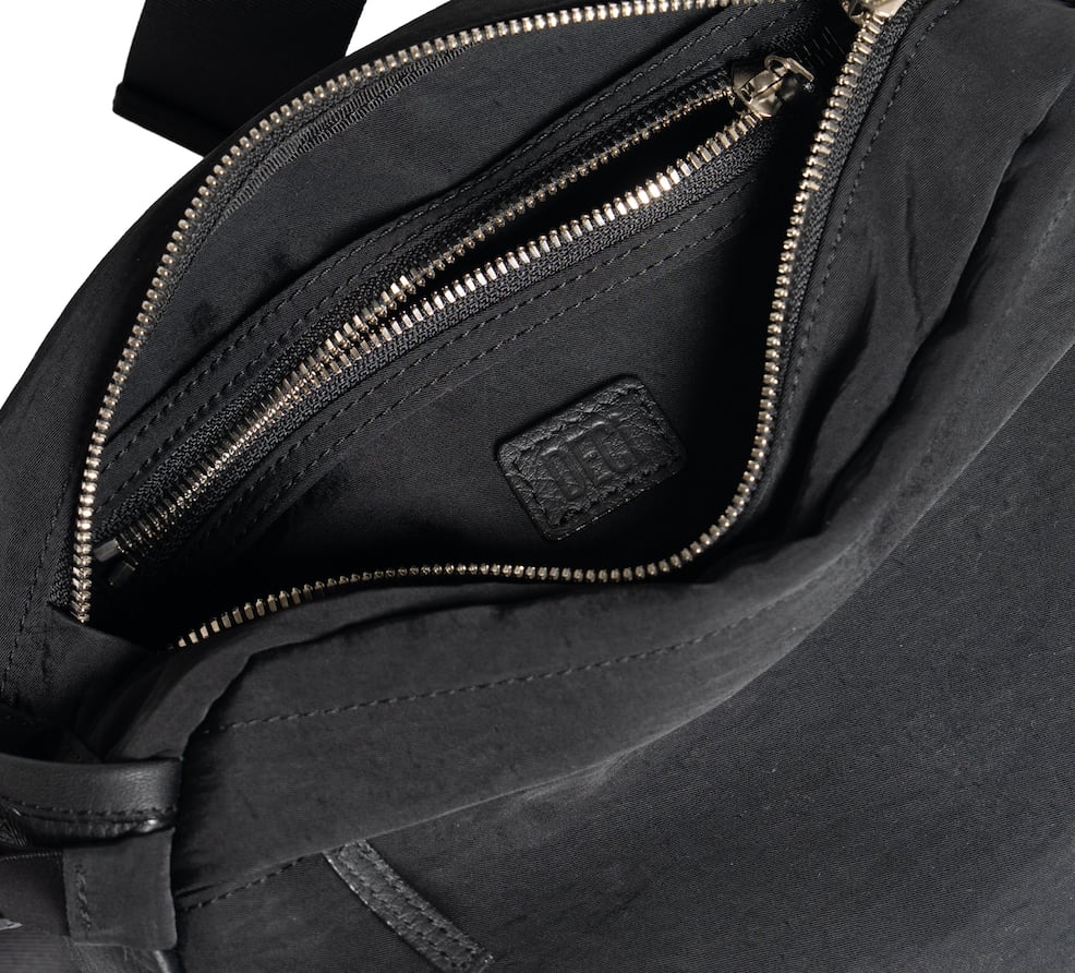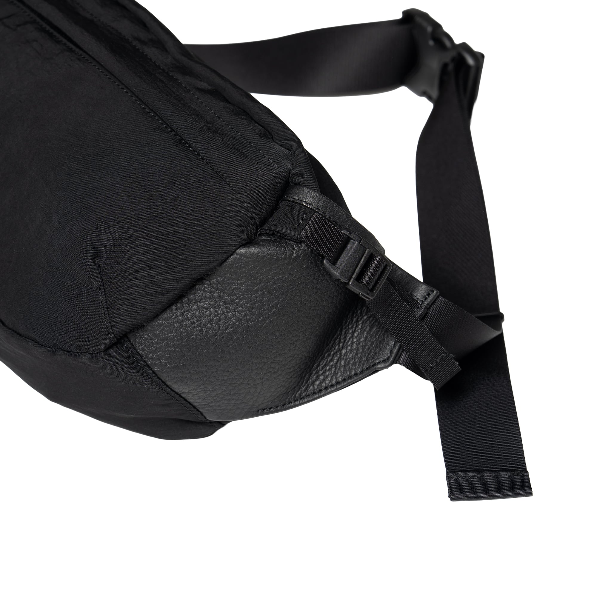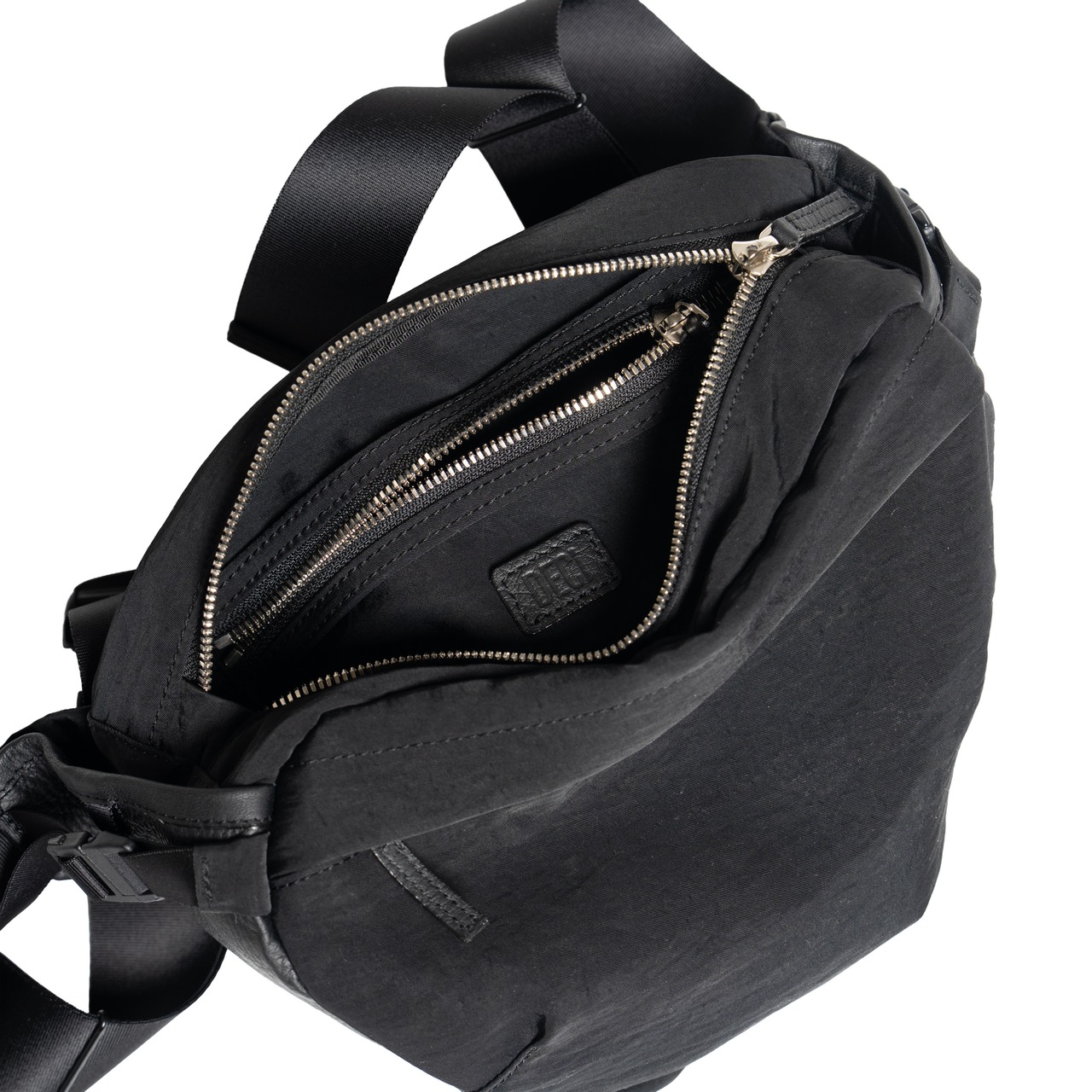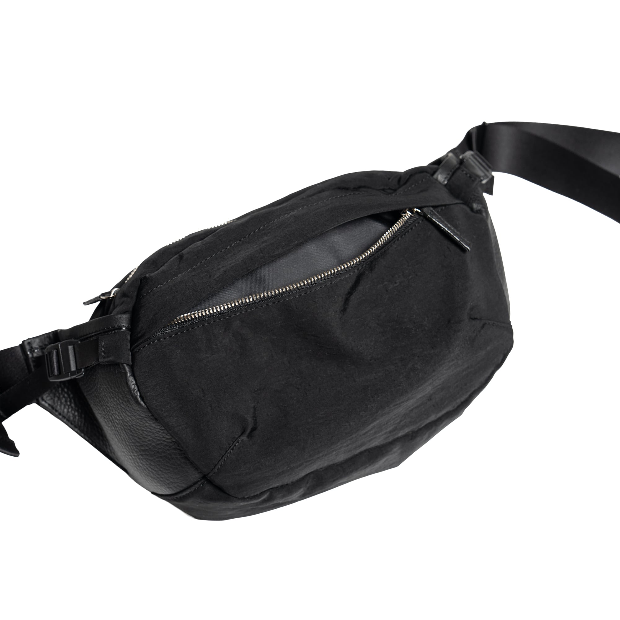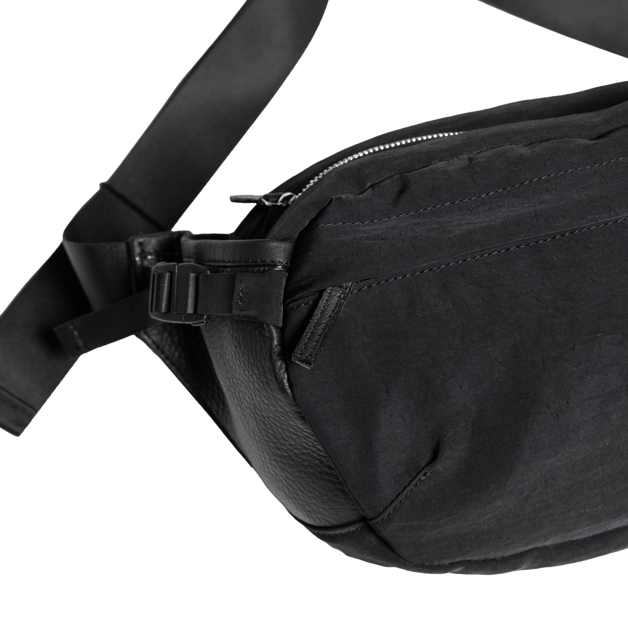 ボディバッグの本体は特殊加工によりナイロンを極限まで追い込み、ハリ・コシと表情感を出した上品見えするヘヴィナイロンを贅沢に使用。